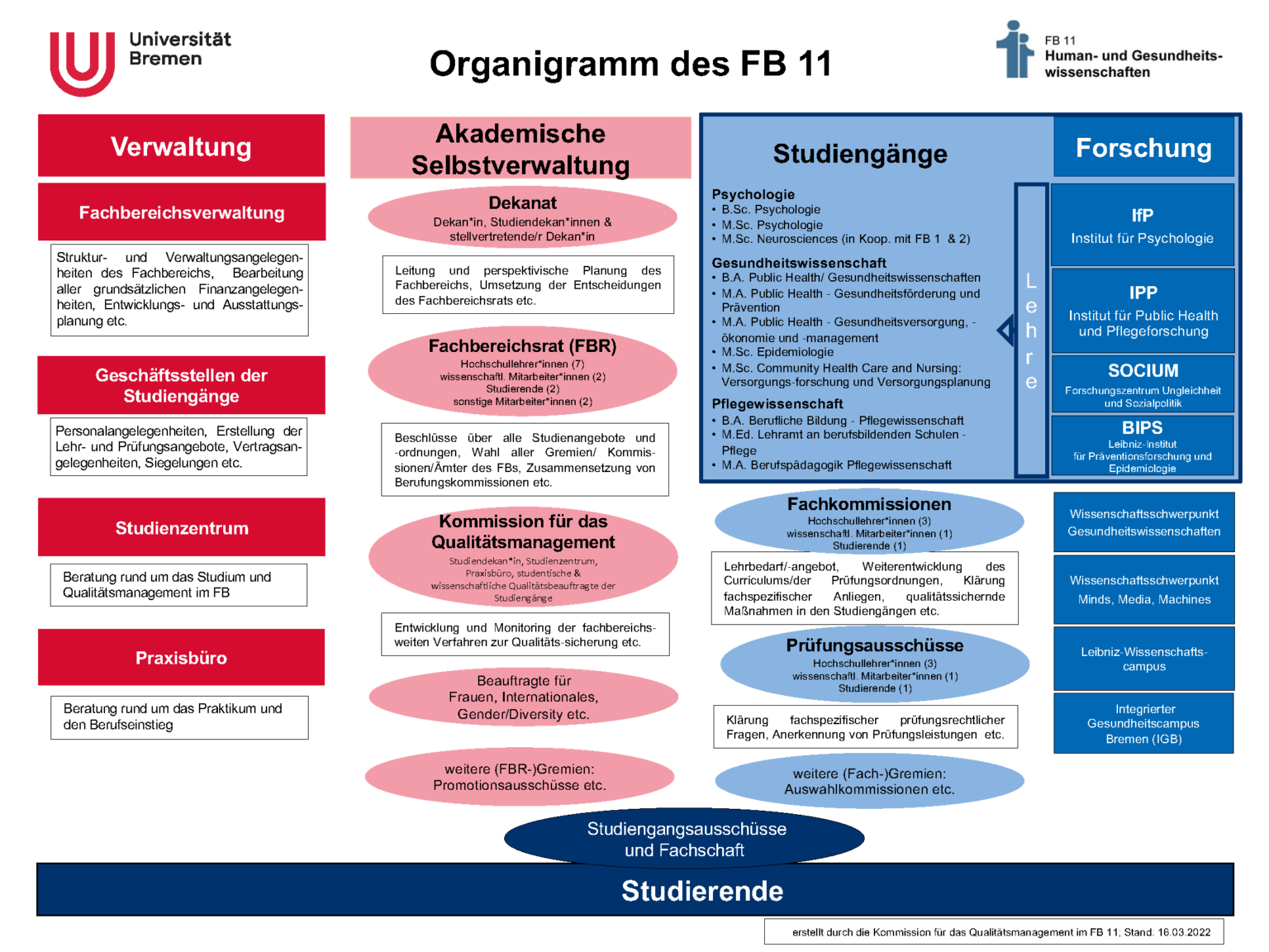 In unserem Fachbereich (Human- und Gesundheitswissenschaften; FB 11) werden einige hochschulpolitische Entscheidungen getroffen. Dabei geht es unter anderem um Prüfungen oder Personal-Entscheidungen. Dafür gibt es spezielle Gremien, die wir euch hier vorstellen möchten: